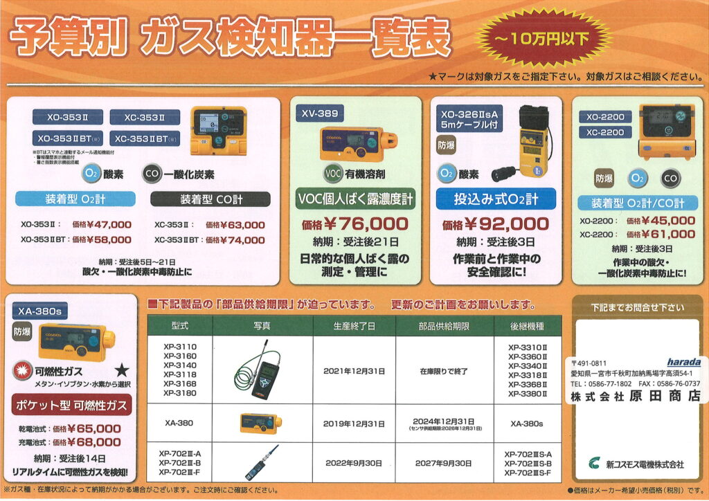 ☐ 決算前 ☐【新コスモス電機】予算別 ガス検知器一覧表